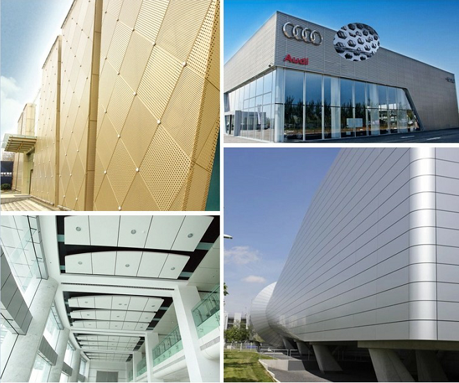 佛山鋁單板有限公司鋁翼鋁單板產(chǎn)品應(yīng)用于:建筑物外墻、梁柱、室內(nèi)吊頂、門頭、陽臺(tái)、雨棚、廣告牌、室內(nèi)建筑裝飾、商業(yè)大樓、別墅、隧道、橋梁、門面招牌、廠房、圖書館、4s店、飯店、售樓部、機(jī)場、地鐵、輕軌、車站、展館、辦公大樓,會(huì)議廳、車船、體育場館、歌劇院、家居等各種場所。